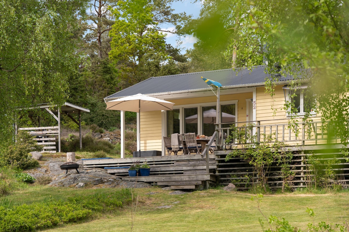ここでは、私たちの素敵な家で静かにお過ごしいただけます。岩から飛び込んだり、釣りをしたり、ボートに乗ったりできる桟橋のあるプライベートアイランドをご利用いただけます。休暇を楽しむために必要なものはすべて揃っており、家の周りに広がるデッキからは一日中太陽を浴びることができます。夕日の下でバーベキューをしたり、庭でキューブをしたり、島に行って桟橋や岩から釣りや水泳をしたりできます。さらにプライバシーを求めるなら、6000平方メートルの大きさの島でキャンプを楽しんでください。ようこそ。