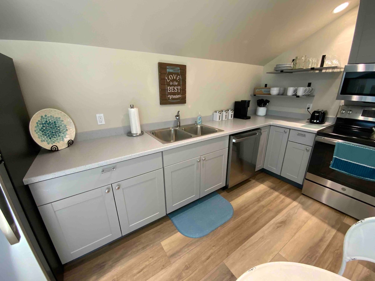 忘れられないアラスカの景色を望む豪華なオーシャンビューの隠れ家。クック湾の広大な景色と火山の夕日をお楽しみください。ジャグジーバスタブ、ダブルウォークインシャワー、ダブルシンクの洗面台を備えたスパのようなバスルームでリラックスしましょう。オープンスタジオスタイルのお部屋には、ガス暖炉、豪華なキングサイズベッド、日の出と夕日を眺めることができるデッキがあります。カスタムキッチンには、ガスコンロ、電子レンジ、コンパクトな冷蔵庫/冷凍庫の引き出しが備わっています。独特な建築の窓が、アラスカの長い夏の間、家を自然光で満たします。