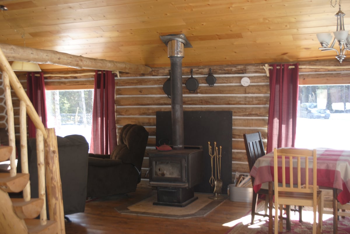 ジェイドシティにある居心地の良いログハウスです。 このエリアはクロンダイクゴールドラッシュの一部で、地下金鉱であるテーブルトップマウンテンを見渡しています。 キャビンは自宅のような感じで、長年にわたって収集した宝物でいっぱいで、電気暖房があります。 クイーンサイズベッド、シングルベッド、基本的なキッチン、ダイニングルームエリア、ラウンジエリアがあります。 新鮮な山の空気を楽しむためのデッキもあります。 ホワイトホース国際空港から600 km/385マイルです。