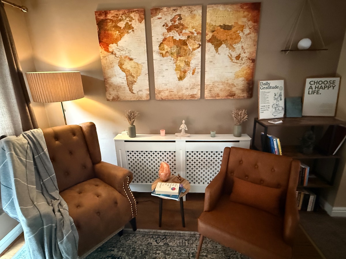 短期滞在にも長期滞在にもぴったりなモダンで温かく快適な家全体。 美しく提示された家は、安らぎのある、散らかっていない、快適な環境を提供します。平和な住宅街にあり、路上駐車場があります。 • 家具が揃った家 • 完備されたキッチン • スナッグ/読書/ウェルネス&瞑想ルーム • 広いダブルベッドルーム2室 • 新しいタオルを備えたモダンなシャワールーム • パティオエリアとプライベートガーデンと家具 • スマートテレビ • Wi-Fi、Blinkドアベル、カメラ