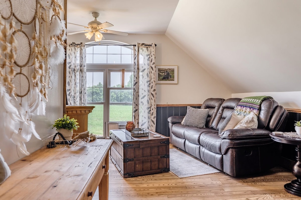 専用の入り口がある、居心地のよいホビーファームで休息し、くつろぎの時間をお過ごしください。 私たちは世界中の人と出会うのが大好きで、みなさまに素晴らしい滞在をお楽しみいただきたいと考えています。 ゲストは、ガレージの上にあるおしゃれなロフトに滞在いただきます。電気暖炉、モダンなバスルーム、広く明るい窓からは田園地帯を眺められる、居心地の良い美しいお部屋で、快適なリビングスペースを備えています。 宿泊施設内では、ミニ馬、ロバ、ニワトリなどと触れ合うことができます。休息が必要な場合は、薪サウナとホットタブをご用意しております。