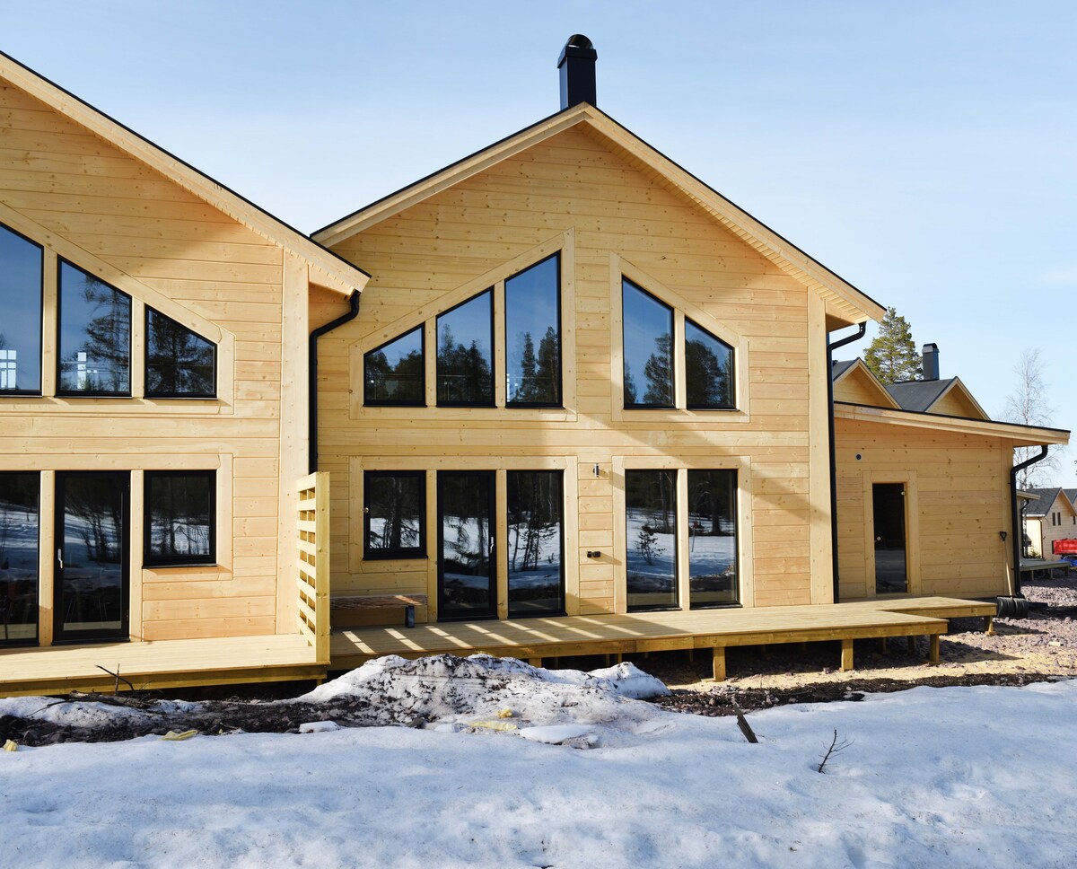 高級素材を使用したこの快適なコテージで、山の空気をお楽しみください。天井の高さが広々とした素晴らしい空間感を与えてくれます。山での長い散歩や川でのカヤックの後は、温かいサウナでリラックスしてください。大きな格子窓からは、松や山々を美しく囲む光が差し込みます。 6〜8人用の設備の整ったキッチンとダイニングエリア。 私たちと一緒にスウェーデンの山々の最高の体験をしてください!今すぐご宿泊をご予約ください。一生の思い出を作りましょう。