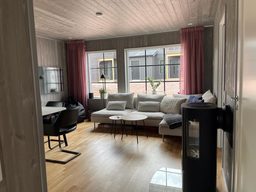 Nybyggd lägenhet med bastu och kamin i fina Stöten