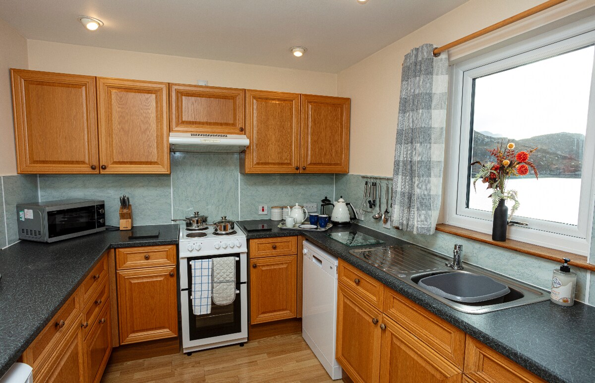 NC 500ルートのクラクトールの美しい砂浜の上にある、素晴らしい3ベッドルームのビーチハウスです。 スプリットロック、コイガック半島、スカイ島、ハリス島、ルイス島の素晴らしい景色を一望できます。 南向きの素晴らしいオープンプランのキッチンとダイニングルーム。 高品質のベッドリネンを備えたスーパーキングサイズ、ダブル、ツインベッドルーム。 独立したユーティリティルーム。2022年に設置された高速Wi-Fi(在宅勤務やストリーミングに適しています)。 広い専用庭園、専用車道、デッキ、ダイニングエリア。