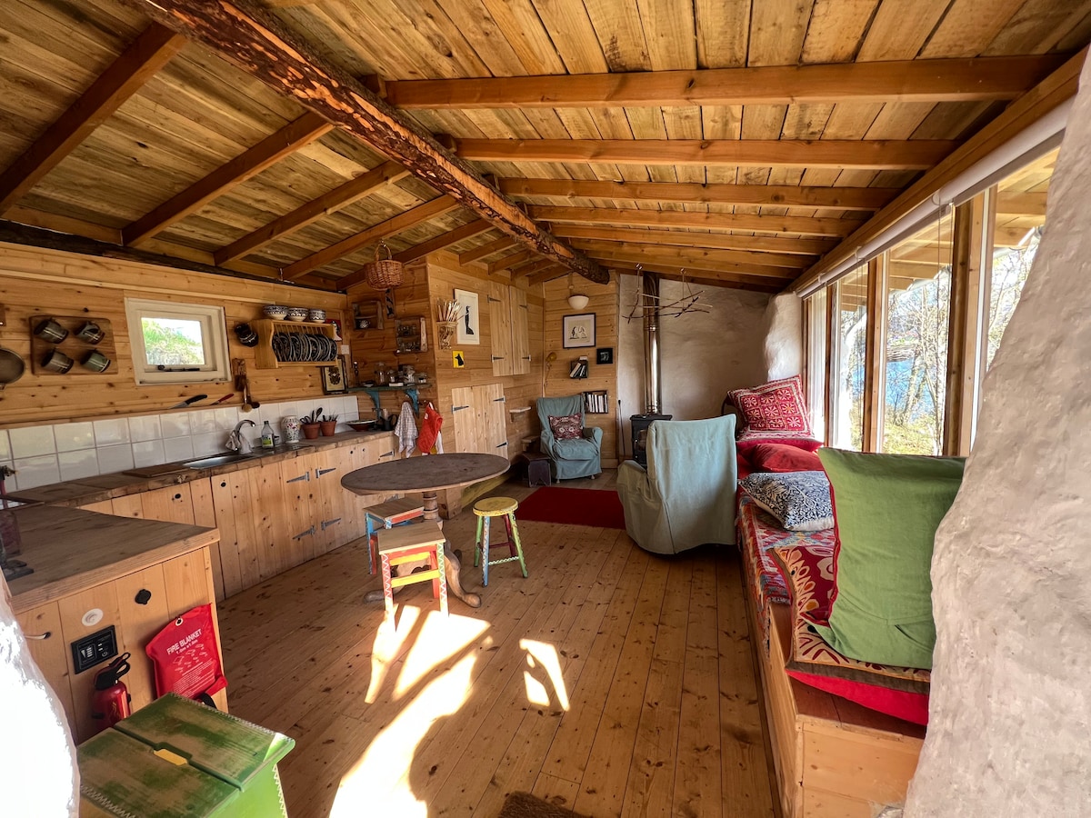 Hideは、NC500でスコットランドを旅行する人や、ユニークな滞在を探して自分で冒険する人には最高の宿泊先です。 ほぼオフグリッドで、快適なベッド、中央に薪ストーブがあり、素晴らしい景色が楽しめます。 オフグリッドのライフスタイルに興味がありながら、携帯電話の充電、ケトルの沸騰、温かいシャワーを楽しみたい人向けの、完全なオフグリッド体験への完璧な足がかりです!11月中旬~3月は水が凍ることがあるため、冬モードになります。