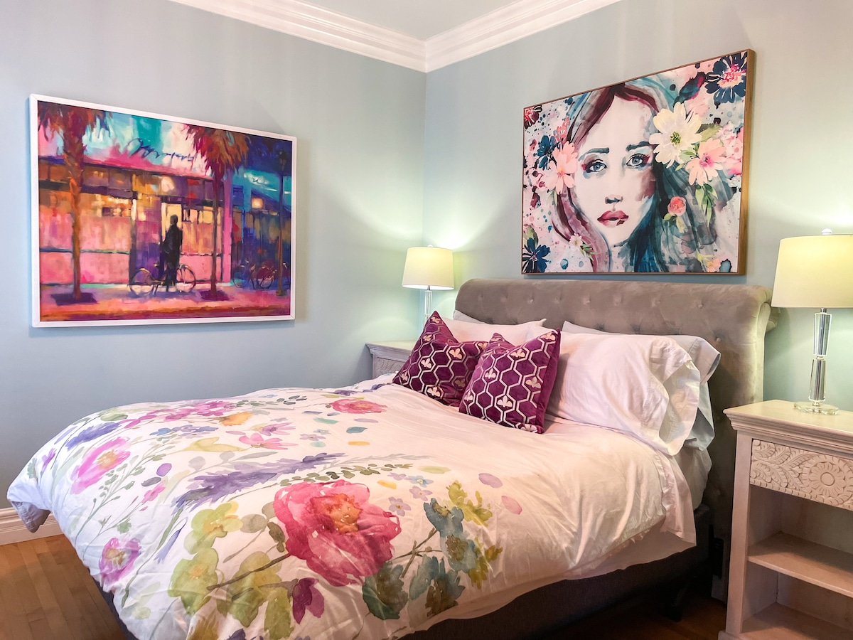 最高のロケーション、センスの良い、禁煙の1ベッドルーム+駐車場