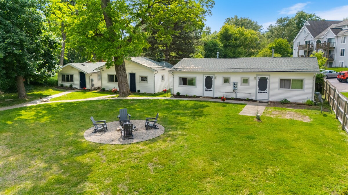 Relax in this lakeside cottage after spending a day on the Portage Chain of Lakes. Enjoy a picnic and games at the community park located directly across the street with unobstructed views of beautiful Portage Lake. Watch a game on the 65" smart TV. Enjoy cooking w/ a fully equipped kitchen and propane grill. Indoor and outdoor dining areas. End the evening around the fire pit underneath the stars. There is a free boat launch nearby on the main road. In-unit washer & dryer. New HVAC in '24