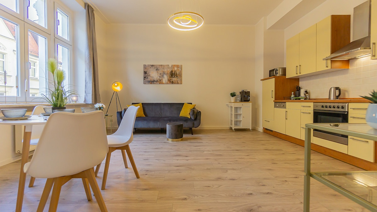 この古い建物の中のスタイリッシュなフラットは、アルトマルクト(Altmarkt)に直接面しているため、コトブスでのアクティビティの出発点として最適です。 - 53平方メートル - 2部屋 - キッチン - バスルーム バスタブと洗濯機+乾燥機付きバスルーム - 設備の整ったキッチンと食器洗い機 朝は挽きたてコーヒーが飲めるコーヒーマシン すべての部屋に遮光カーテン 完璧な睡眠のためのスプリングマットレス ソファベッド(1.10m)と追加ベッド バスと電車でのアクセスが非常に良い