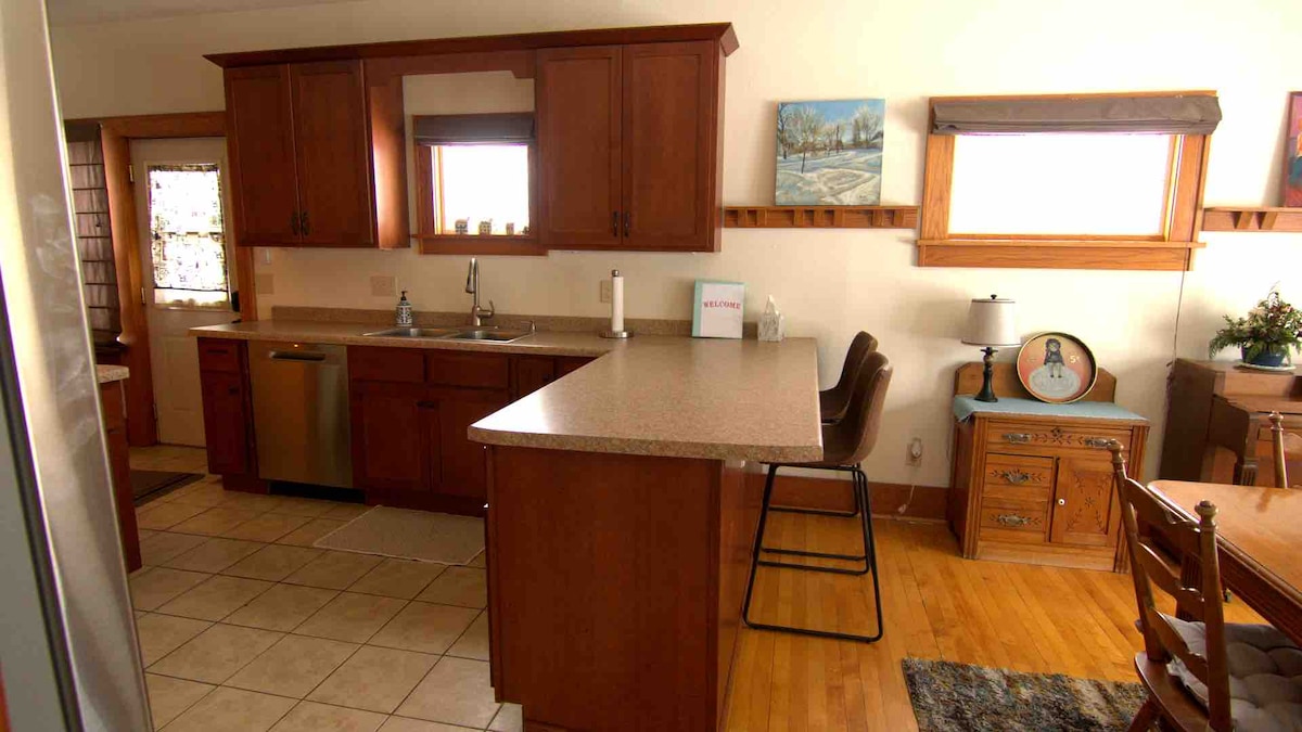 Selected top 15 North Dakota airBnBs by Road Affair magazine, Rust House Inn is an Arts and Crafts style home built in 1925. Updated in a modern farmhouse style it showcases architectural details including white maple floors. The kitchen is a chef's dream. The award winning yard is a perfect place to relax. Sea salt hot tub and fire pit are favorite amenities. Downtown, with restaurants, grocery store and coffee shops, is a short walk away, making the home's location perfect. No parties.