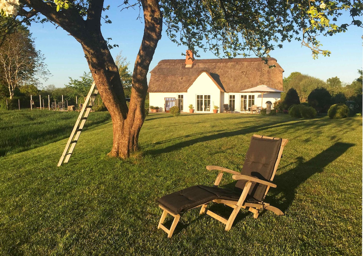 改装済み茅葺き屋根の「Lykkehus」