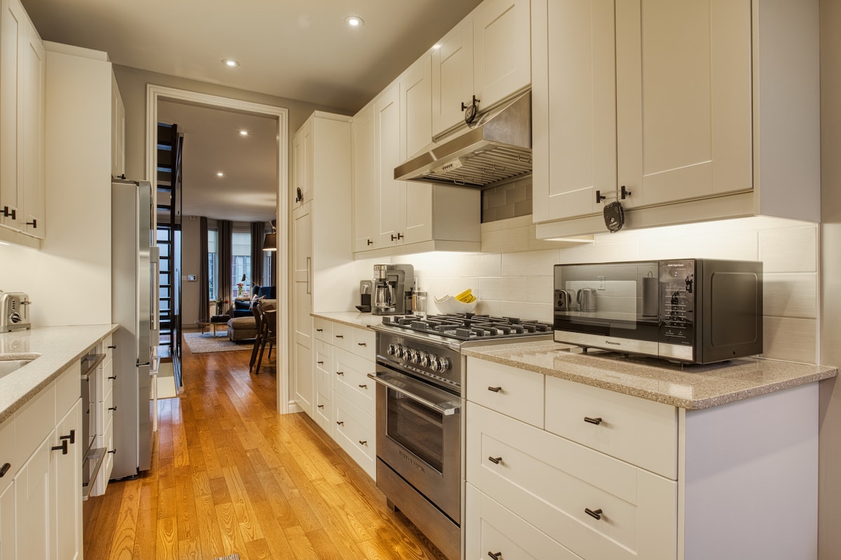 ディスティラリーディストリクトから数歩の場所にある、上位1%に入るこのリスティングは、1870年代に建てられた連棟住宅を美しく改装したもので、歴史的な魅力とモダンな洗練さが融合しています。全体にわたって考え抜かれたデザインが施されたこの宿泊施設は、ディスティラリー・ディストリクト、セント・ローレンス・マーケット、そして市内屈指のカフェやレストランが点在するエリアにあります。夜は、チャコールトーンの静かな寝室で、存在感のあるシャンデリアが放つ温かみのある光の下でくつろぎましょう。トロントでの洗練された滞在があなたを待っています。