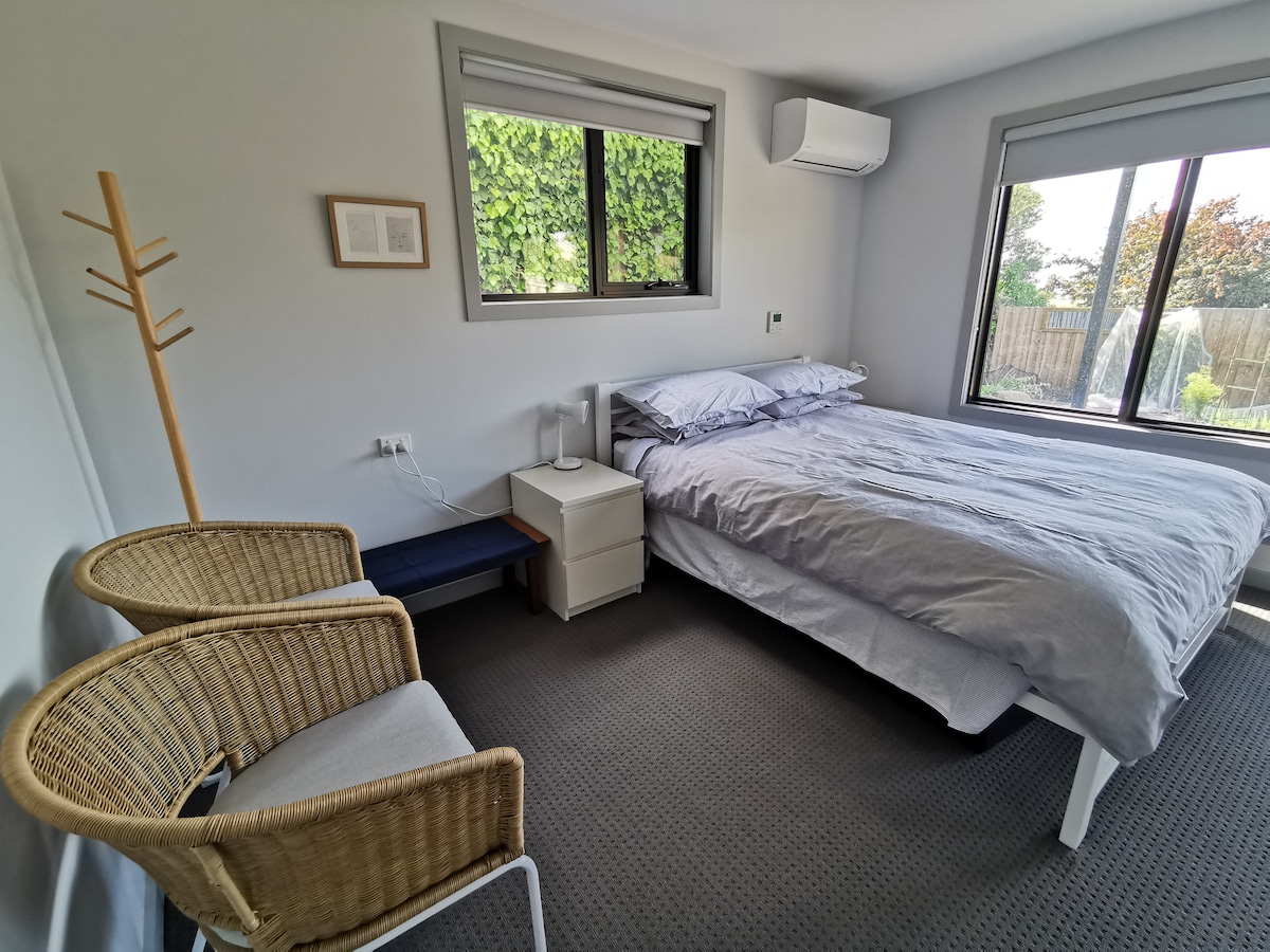 A detached studio, in a convenient part of West Hobart, close to public transport, walking distance to North Hobart’s cafe/ restaurant/ strip. Suitable for two people with a double bed, ensuite, study bench/dining table with a basic kitchenette only. It is not equipped with a fully working kitchen. Past the second garage doors is a private narrow courtyard. Fast fibre optic internet, suitable for video or business, ensure the router is turned on in the studio. Off street free parking.