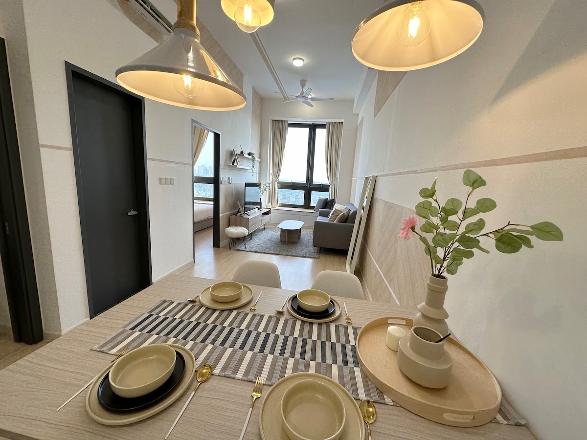 🤗JBハウスは、ホテルのような雰囲気、柔らかい寝具、厳選されたインテリア、フルキッチンを備えたスタイリッシュな高層階の2ベッドルームの隠れ家です。家族連れ、カップル、お友達、出張のお客様に最適です。プール、ジム、ゲームルーム、無料駐車場をご利用いただけます。 レゴランド、ブキッ・インダー、サンウェイ・ビッグボックス、メディニ、主要な高速道路まで数分です。楽しみ、食事、ショッピング、穏やかな旅行先がすべて近くにあります。 清潔で居心地の良い空間、素晴らしいアメニティ・設備、心を込めて作られた滞在先、まさに5つ星のお家のような滞在をお楽しみください。