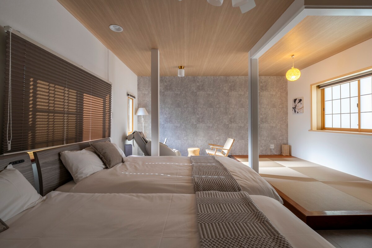 ※新規オープンにつき特別価格でご提供中です。ぜひこの機会にご利用ください。 お花茶屋駅から徒歩わずか1分。成田空港・羽田空港からもアクセス良好な東京下町に位置する、静かで安心・快適なプライベート滞在空間です。 スカイツリーや上野、浅草へも電車で約20分と、ご家族での観光や出張にも便利です。 【お部屋の特徴】 ・29㎡のワンルーム ・最大4名様滞在可能 ・ダブルベッド(140cm幅)×1台 ・ソファベッド(展開時140cm幅)×1台 ・モダンでシンプルなインテリア 【充実の設備】 ・高速Wi-Fi ・プロジェクター ・システムキッチン(IH)、冷蔵庫、電子レンジ、調理器具一式 ・温水座便器 ・洗濯機/乾燥機/エアコン/ドライヤー ・タオル、シャンプー・コンディショナー(リンスイン)、ボディソープ、フォームソープ完備 【安心のセキュリティ】 ・ビル1階エントランス:暗証番号式オートロック ・部屋:スマートロック導入 【周辺情報】 ・コンビニ・飲食店・スーパー・薬局:徒歩1分 ・浅草・上野・スカイツリー:電車で約20分 ・東京駅・秋葉原・銀座・池袋:電車で約30分