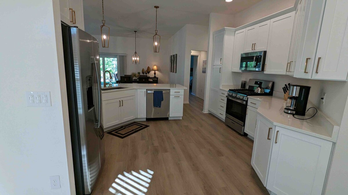 ウィズラコチー川の運河に面した1エーカーのプライベートな隠れ家で、宿泊施設の両側を川が囲んでいます。鳥や鹿が遊ぶのを見ながら、水を眺めながらポーチでリラックスしてください。 子供たちはタイヤのブランコ、レゴ、リンカーンログ、ビリヤード台、スキーボールなどのおもちゃが大好きです。冒険を待っているゲストはカヤックをご利用いただけます。焚き火台で絆を深め、小道を歩き、ハンモックでくつろぎ、桟橋で釣りをしましょう。大画面に映画を見ることができます。逃避行へようこそ!