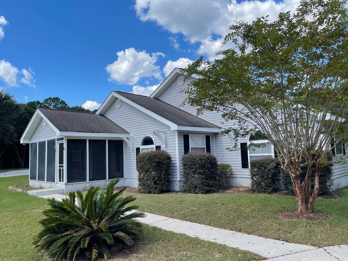 サウスカロライナ州ブラフトンにある3つの素晴らしい寝室の家です。フルキッチン、広々としたマスターベッドルーム、ウォークインクローゼット、Fire StickストリーミングTV、専用フェンス付きの大きな裏庭。キングサイズベッド1台、クイーンサイズベッド2台があります。裏庭にはプロパンガスグリルがあり、公共プールまで徒歩圏内です。この家はブラフトン旧市街から数分、ビーチに向かうヒルトンヘッドアイランドから11マイルのところにあります。