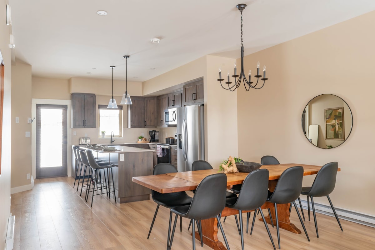 Relax in our ski-in/ski-out luxury home in Sun Peaks' serene East Village. Enjoy effortless, level-entry access straight through the heated garage — no stairs to climb, ever - making arrival, unpacking, and suiting up simple and comfortable. After a day on the mountain, unwind in the private hot tub, wander the Valley Trail to the village, or ski right back to the door via the East Village Ski Way for the easiest après imaginable. With complimentary snowshoes provided for exploring.