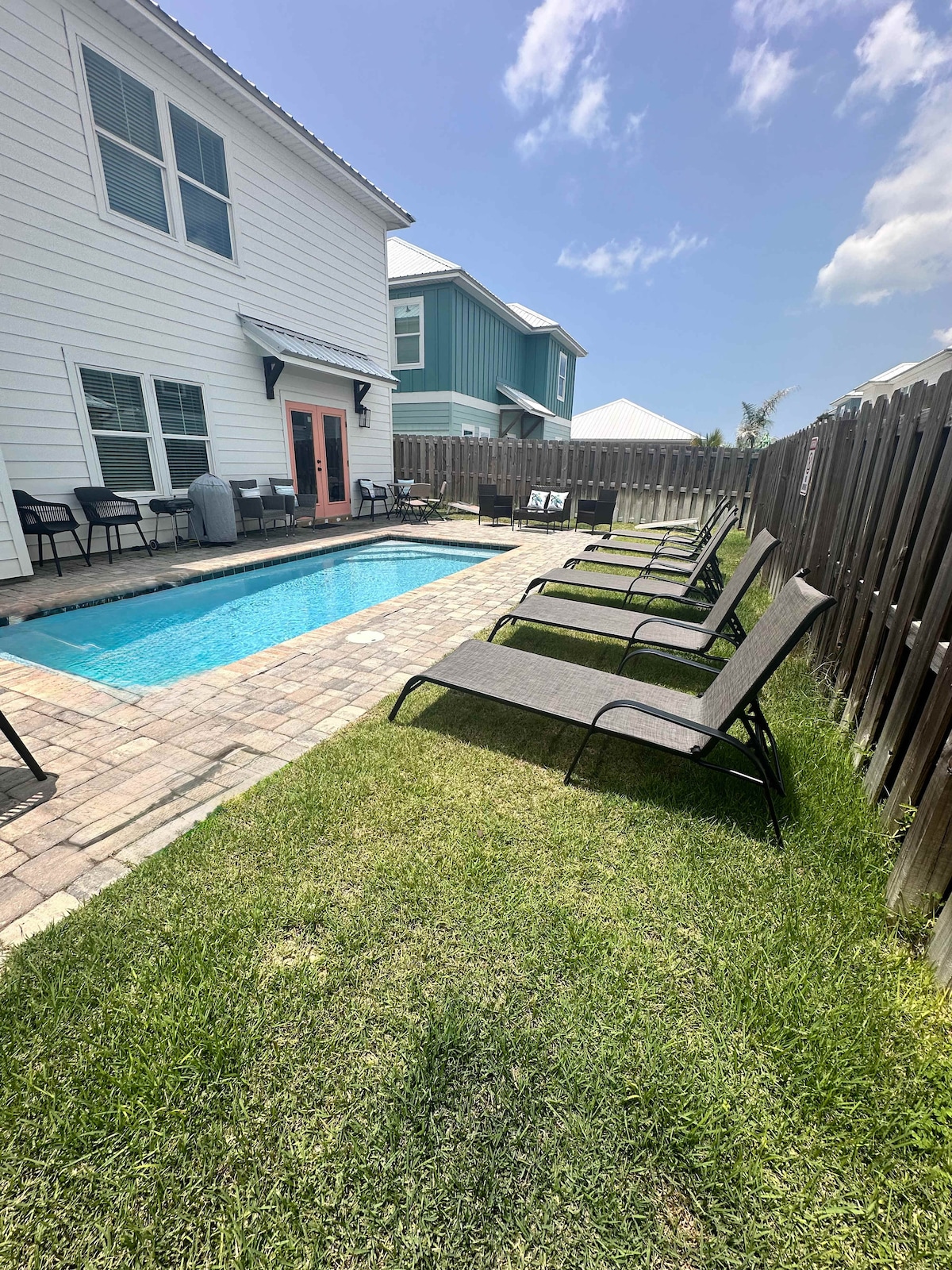 6-Seater LSV/golf cart + 6 Bikes + 2 Stand Up Paddleboards INCLUDED! This spacious, luxurious custom new home with STUNNING lake views + direct boardwalk access to the beach awaits! Private pool, outdoor kitchen w/ built-in grill, fire pit, indoor fireplace, wet bar, multiple living rooms + open concept layout! bedrooms with en-suite bathrooms, bunk room + an additional half bath! Sonos system in all living, bedroom, + outdoor spaces. Perfect for an amazing beach getaway! NO PETS ALLOWED