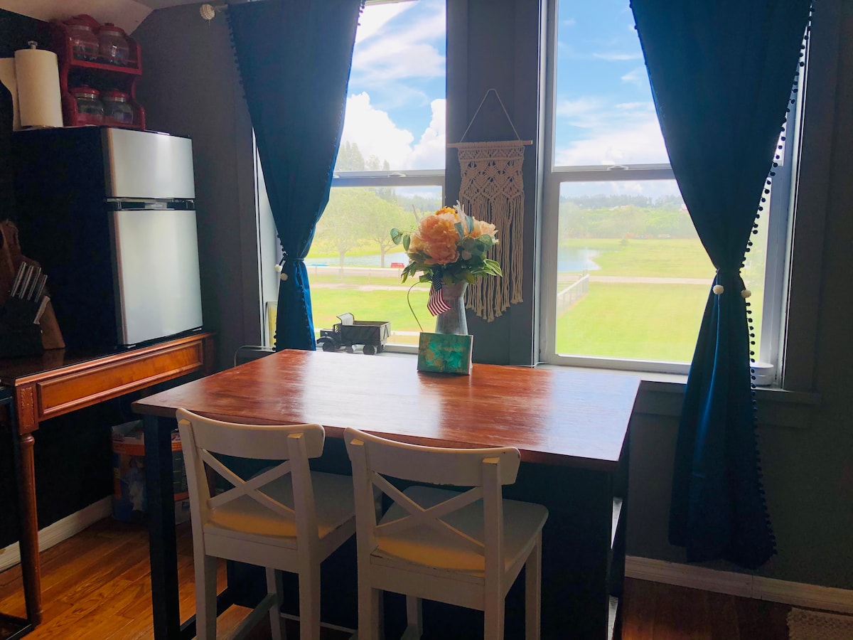 フロリダ州ベロビーチにある、実際に営業している農場、Pura Vida Florida Farmで楽園をお楽しみください。 リラックスして、くつろぎ、自然とつながることができる素晴らしい場所です。 農場を歩き回ると、ロバ「スウィートハート」のような私たちの大切な動物に会うことができ、馬のデイジー、サンダンス、スプラッシュ(その他いろいろ!)と一緒に時間を過ごすことができます。彼らも私たちのゲストです。 この美しいお部屋は納屋の2階にあり、専用のアクセスがあります。 乗馬セッションの情報については写真をご覧ください!