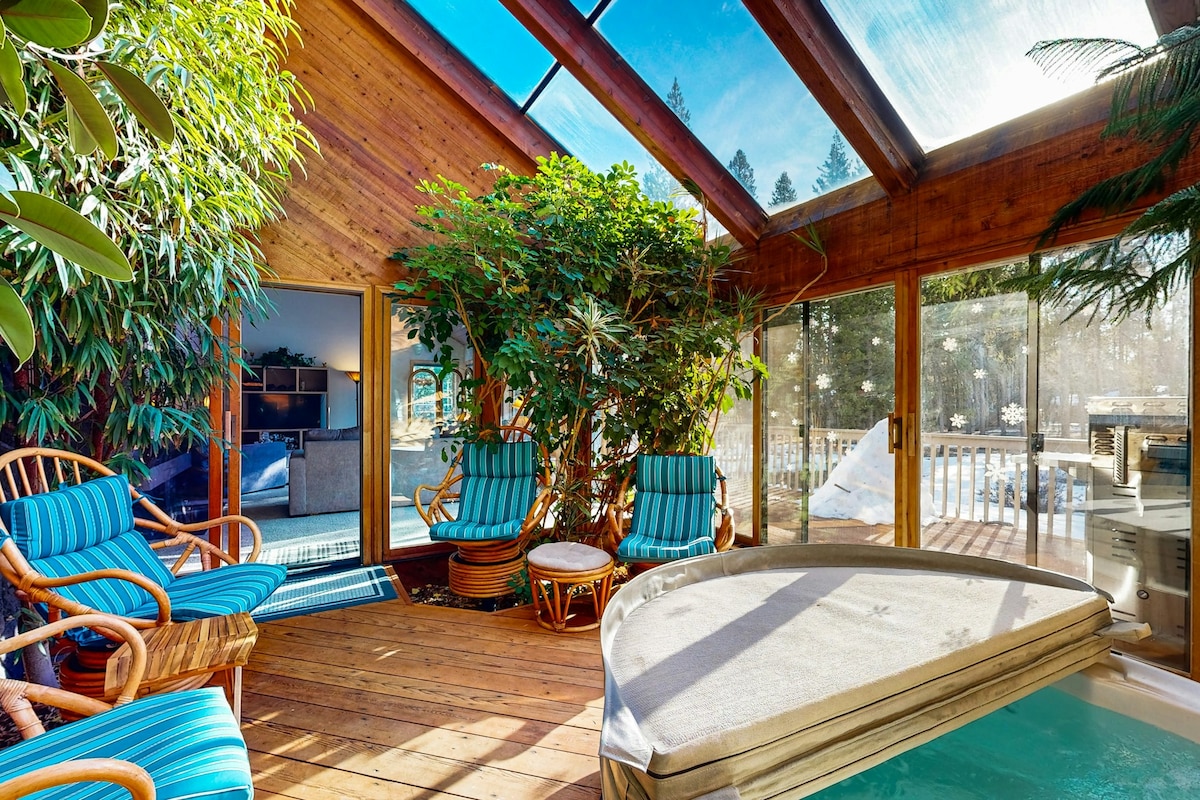Our home is special for its location providing easy summer access to water on the Deschutes River and easy winter access to snowy adventures on Mt Bachelor. Summer months are booked early by guests who love our peaceful water views and access to their private dock, kayaks & bicycles. Our winter months welcome guests looking to experience snowy pines and easy access to Mt Bachelor's powdery slopes and surrounding trails. Summer or winter guests celebrate our pristine hot tub, morning to evening.