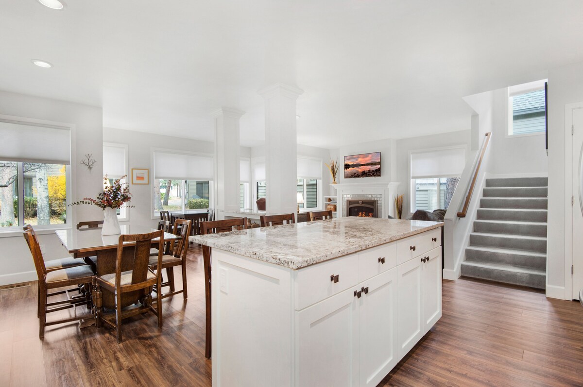 ガス焚き火台とバーを備えた屋上のプライベートデッキをお楽しみください。 1日のアクティビティの後は、カスタムメイドのバスタブでリラックスしてください。 この複数階の豪華なタウンハウスでリラックスしてください。 デシューツ川のトレイルまで徒歩2分、ベンドのダウンタウンまで徒歩10分です。 地元のビール醸造所、ショップ、レストランまで徒歩で行けます。 グルメシェフ仕様のキッチンで、お友達やご家族と一緒にお料理を楽しみましょう。 自転車やスキー用具は2台分のガレージに安全に保管できます。 高速Wi-Fi - リモートワークに最適です。