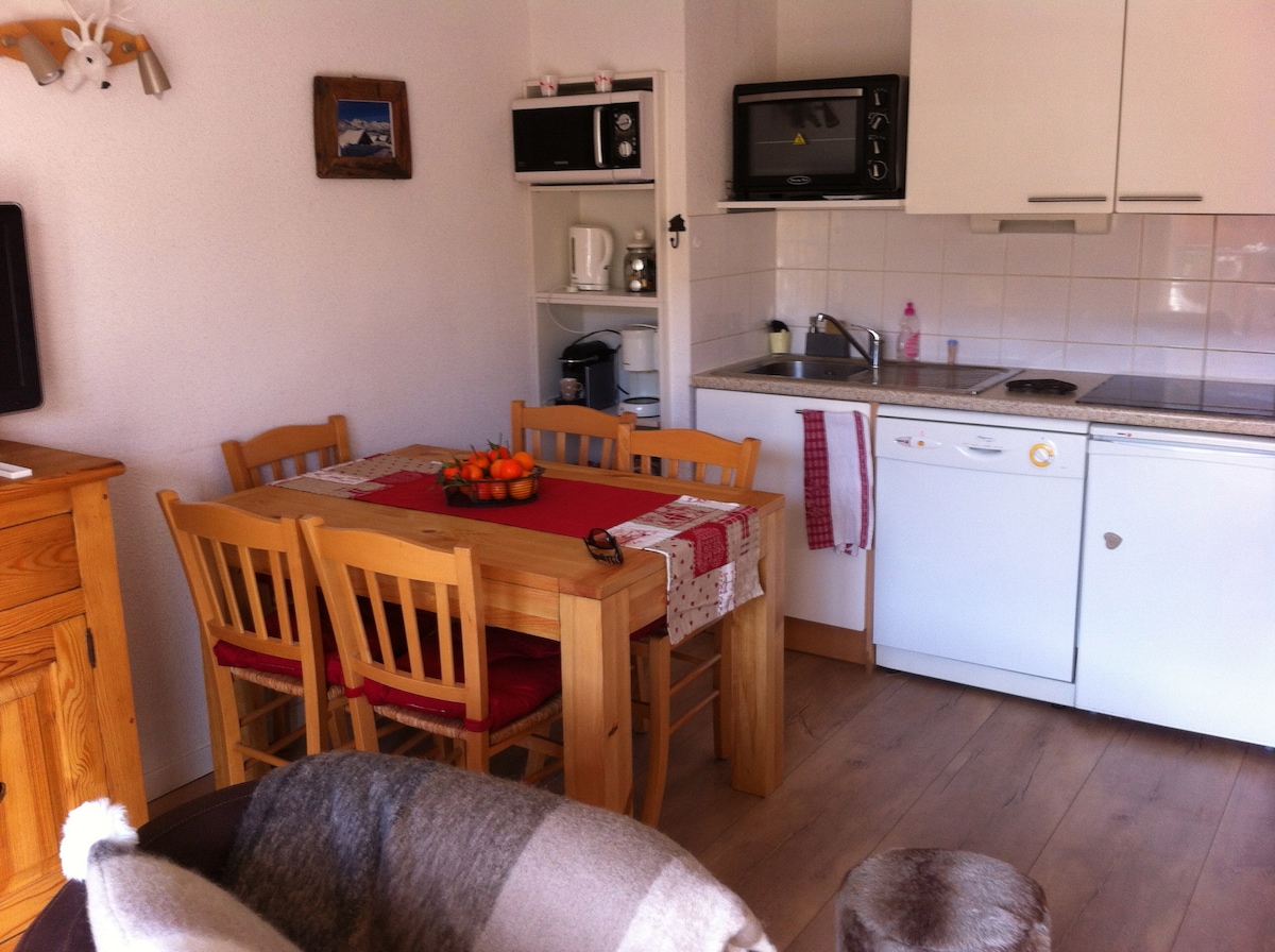 私たちはアパートをリノベーションし、生活空間を最適化し、日常生活を楽にする最大限の快適さを提供します(ご自宅のように)。無料Wi-Fi、多くの収納スペースとタオル/コート掛け、マルチプラグ、延長コード、調理器具とキッチン家電、ゲーム、本、CD、DVD。 アパートはゲレンデ、ショップ、アクティビティ(ESF)から徒歩3分です。 私たちは年間を通して数週間、子供、幼児、赤ちゃんと一緒に別荘として使用しています。