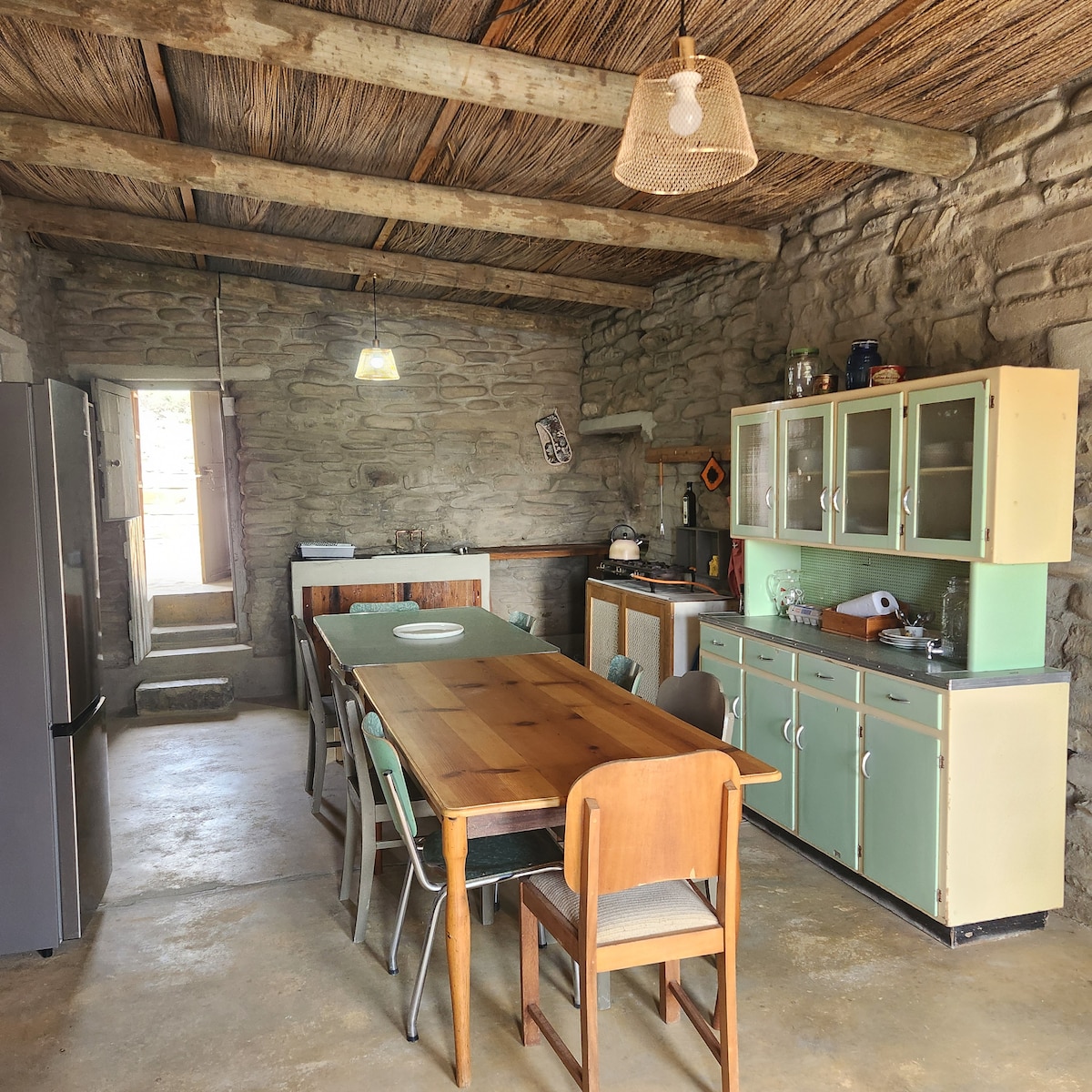 2ベッドルームの石造りのコテージ。 ガスバーナー、冷蔵庫付きの設備の整ったキッチン。 ストープの上のブライの内も外も素敵。 第一部屋にはダブルベッドがあり、第二寝室にはシングルベッドがあります。 パネルヒーター、電気毛布、羽毛布団。このユニークで家族連れに優しい場所での思い出。