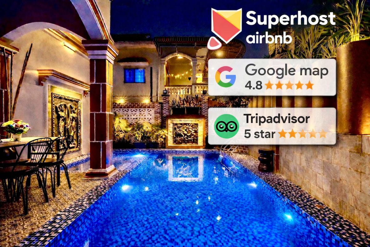 5ベッドルームの広々としたブティックホームで、専用プール付き。クメールと西洋建築のユニークなスタイルで建てられ、オアシスの雰囲気があります。シェムリアップの地元最大の市場の近くにあり、ダウンタウンのパブストリートからわずか10分、素晴らしいアンコールワットまで15分です。 この美しいヴィラは、グループやご家族がプライベートな滞在を楽しみ、まるで自宅にいるかのように感じるのに最適です。 ご滞在中は、本格的なクメール料理、送迎/ガイド付きツアー、空港送迎を手配することができます。