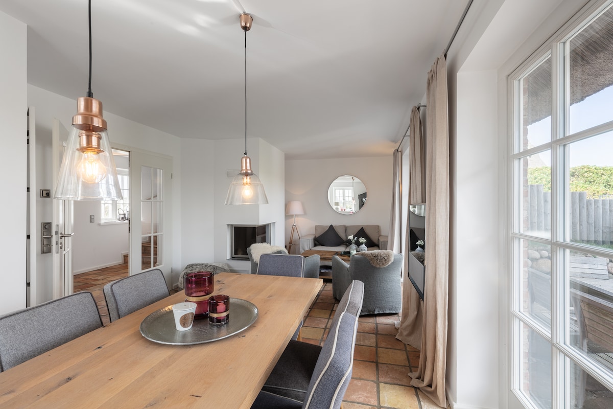 ホリデーホーム・フリーダ – シルト島の北海リトリート ホリデーホーム・フリーダは、最大5名様まで宿泊可能な80平方メートルの広さを提供しています。3つの寝室、サンルームとダイニングエリアを備えた設備の整ったキッチン、薪ストーブを備えた明るいリビングルーム、テラスと広々とした庭へのアクセスがあり、リラックスした日々を過ごすことができます。2つの寝室とバスルームは上階にあり、屋根裏には追加の部屋があります。ゲスト用トイレと家の前に駐車スペースがあります。
