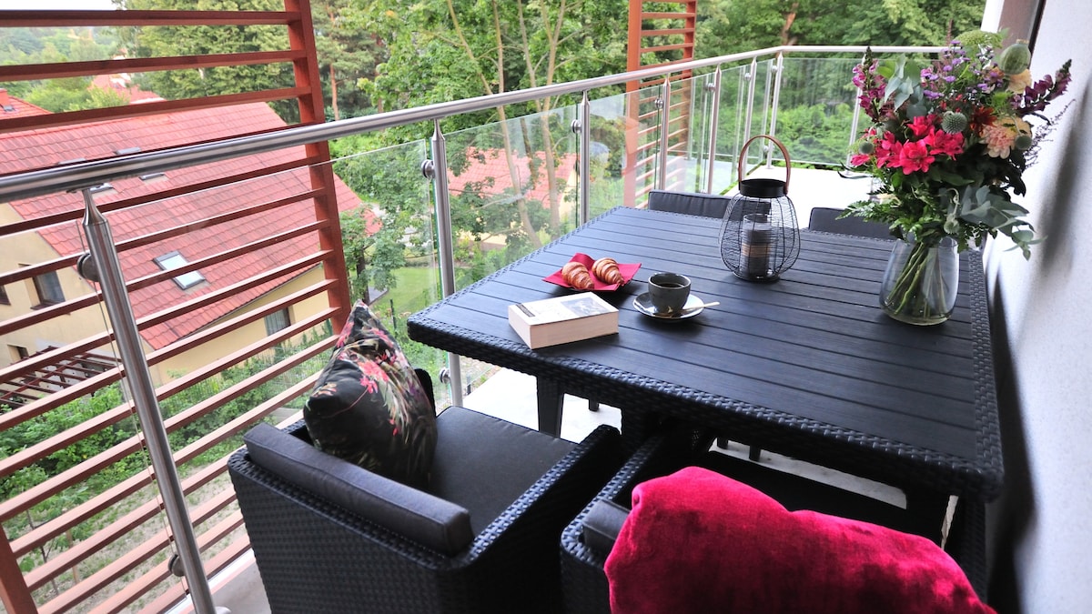 アパートは、Duszniki-Zdrójのパーク・ズドロヨウの近くにあります。Zieleniec Ski Arenaから10キロ。施設にはシャワー付きのバスルーム、キッチンとシングルソファベッドを備えたリビングルーム、大きなダブルベッドと衛星テレビを備えたベランダがあります。アパートの利点は、公園と近くを流れる川、ビストリツァ・ドゥシニツカ川を見渡せる大きなテラスです。テラスには籐製の家具があります。数歩の範囲内に、2つの食料品店と多数のレストランがあります。