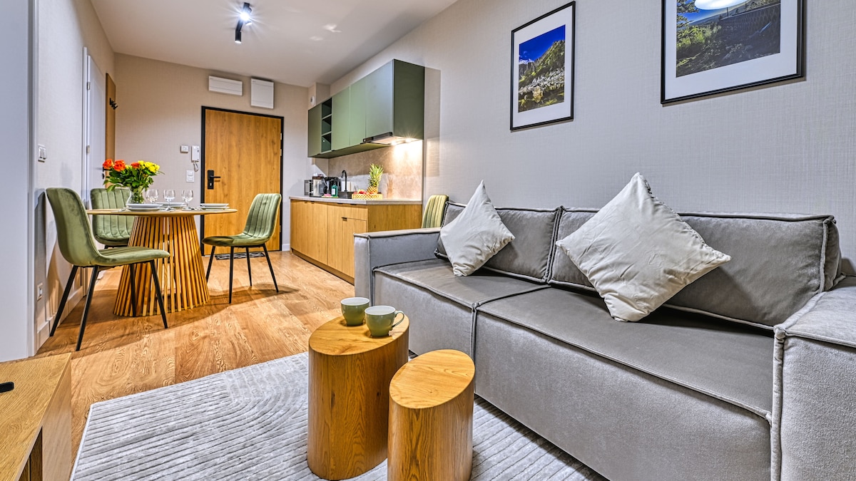 1か月以上の長期滞在を快適に過ごすのに必要なキッチンとアメニティ・設備を備えた家具付きの宿泊先。また貸しでお部屋を借りる代わりとなるご提案です。