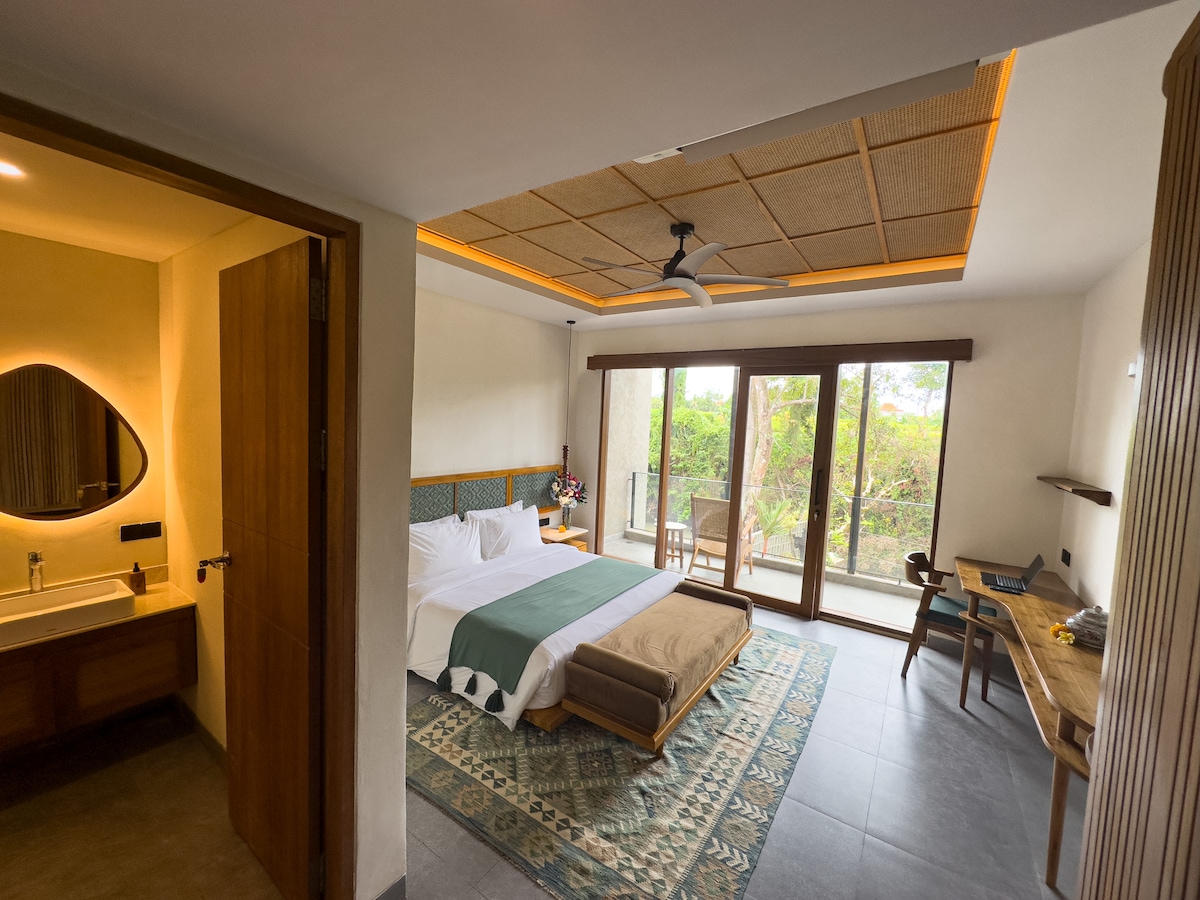 Ade Baliがデザインした、チャングーの静かなトゥンバク・バユのモダンな1ベッドルームの隠れ家、Sore Tumbak Bayuh Studioを体験してください。穏やかな田園風景に囲まれたこの宿泊施設には、専用バルコニーと快適なインテリアが備わっています。静けさとスタイル、そしてチャングーの活気に満ちたエネルギーへのアクセスを求める旅行者にぴったりの、親密な熱帯の隠れ家です。 •バルコニーラウンジ、オープンプランのリビング、パノラマビューの田んぼ • サーフィンと夕日を楽しめるペレレナンビーチまで8分 • 高速Wi-Fi、24時間年中無休のゲストサポート&コンシェルジュサービス