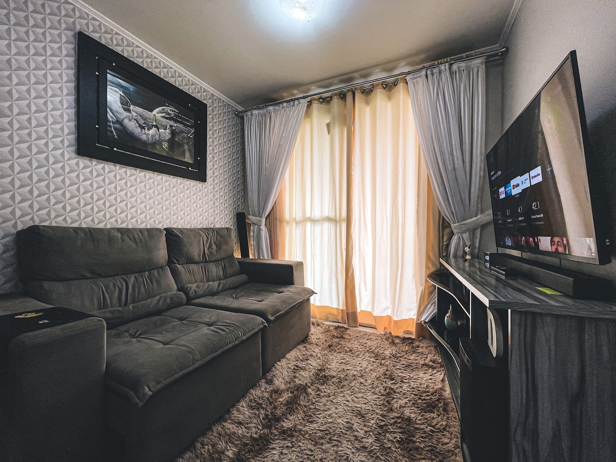 アグアス・クララスの最高のロケーションをお楽しみください。パン屋は徒歩4分、地下鉄は徒歩6分です。屋根付きガレージ、ユニット内のフルサイズランドリールーム、保護スクリーン付きバルコニー、設備の整ったキッチン、ベッドリネン、バスルームが利用可能です。高速Wi-Fi、55インチのスマートテレビ。 エアコンとエキストラマットを備えたスイート、2mの固定ソファを備えたリビング。これらすべてがエコロジカルパークの目の前にあります!あなたのためだけの素敵で完璧なアパートです!