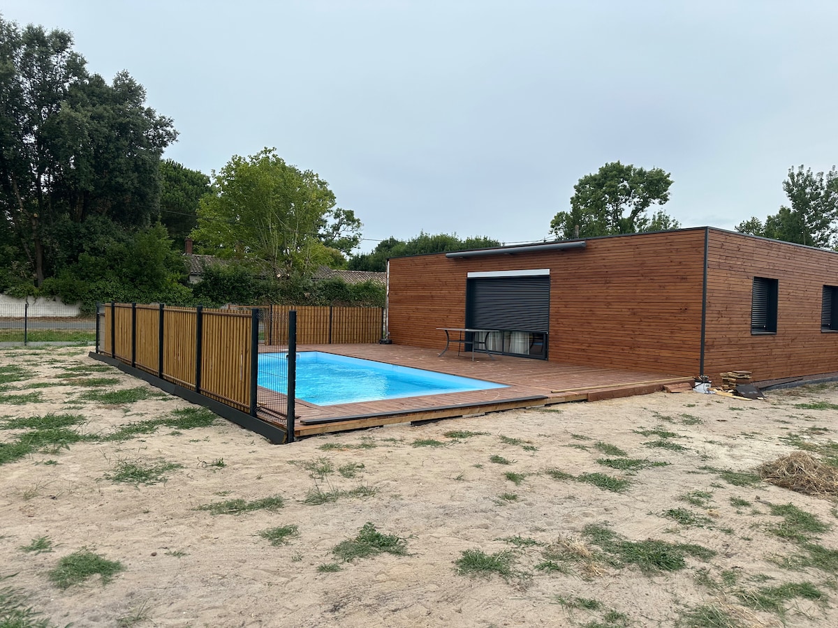 美しいホテルの客室の快適さを備えた、自然の中心部の静かな環境にある、ユニークな高級宿泊施設をご提供します。 ロッジは2ヘクタール以上の広大な森の上に位置しています。 建物の高さは3mで、階段でアクセスできます。内部は30m2、部分的に遮蔽されたテラスは25m2です。 テラスにはスパがあります。 Côte & Lodgeは、海と河口の間にあるジロンド県西海岸のタレに位置し、スーラック・シュル・メールの近くにあります