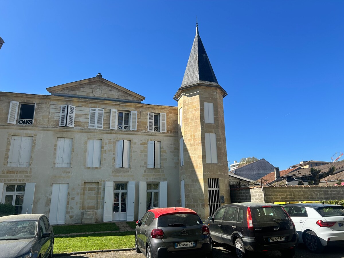 レビュー12件、5つ星中5つ星の平均評価ボルドー近郊にある、お城の中の居心地の良いマンション・アパート