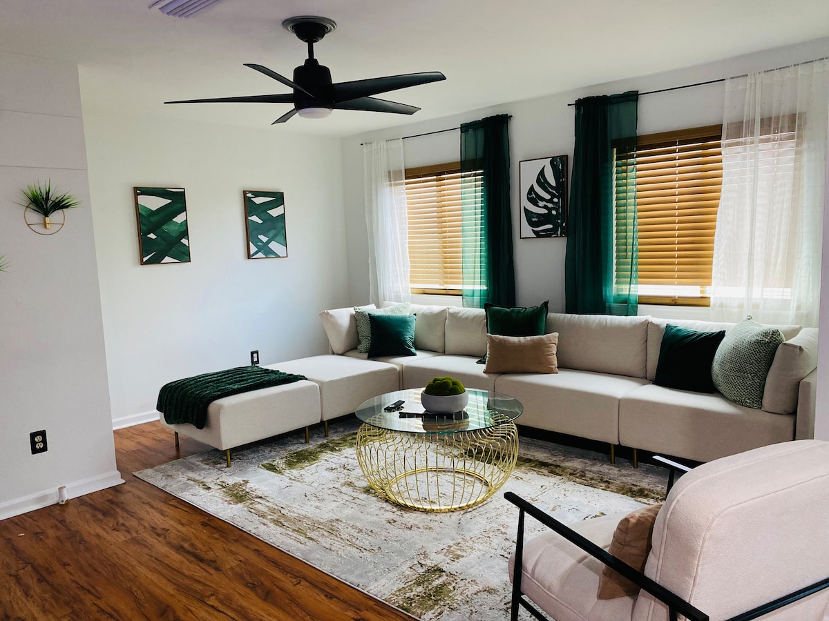 街のエンターテイメント、地元のお店やレストラン、市内の大学からわずか5 ~15分の静かで便利なロケーションにある、美しく装飾されたタウンハウスに逃避しましょう。 この1ベッドルーム/1バスルームは、スムーズなキーレスセルフチェックイン、55インチスマートテレビを備えた広々としたリビングルーム、ダイニングルーム、設備の整ったキッチン、ランドリールーム、パティオ(工事中)につながる寝室など、すべてが揃っています。 カップル、ご家族、スポーツファン、冒険好きにおすすめの宿泊先です。