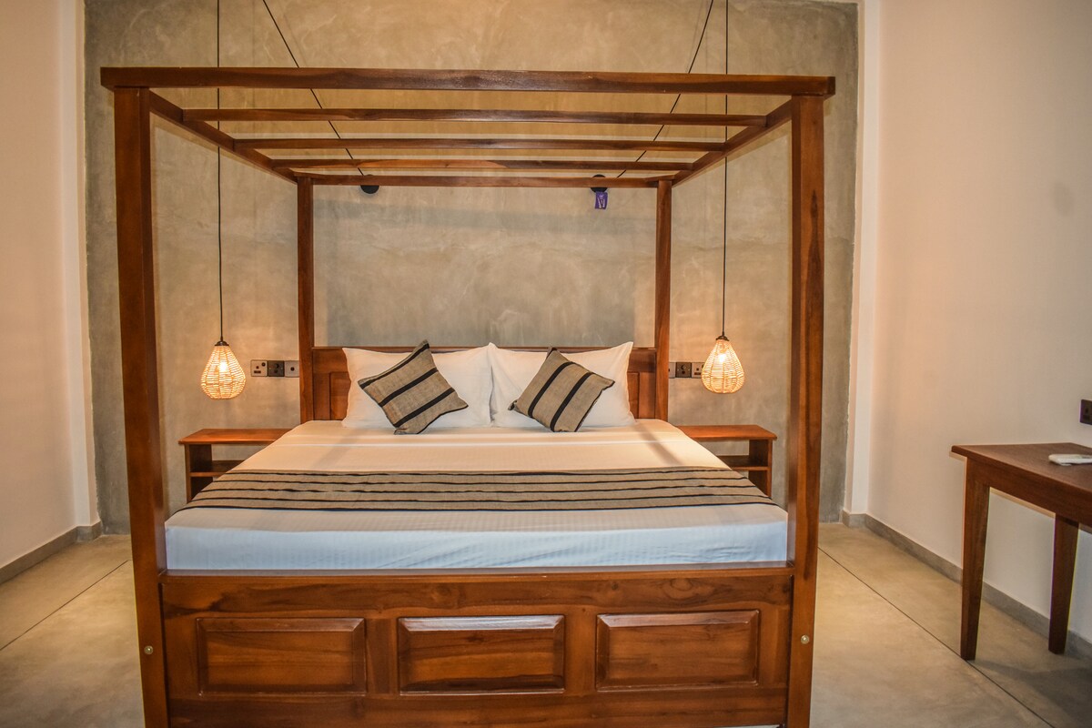スリランカのカバラナロード、アハンガマのデラックスダブルルームで究極の快適さを体験してください。スタイリッシュに装飾された客室には、広々としたダブルベッド、エアコン、プールを見渡せるプライベートテラスが備わっています。もちろん、エアコン、Wi-Fi、モダンなバスルームも完備しています。そのため、カップルやリラクゼーションを求める旅行者に最適な隠れ家です。