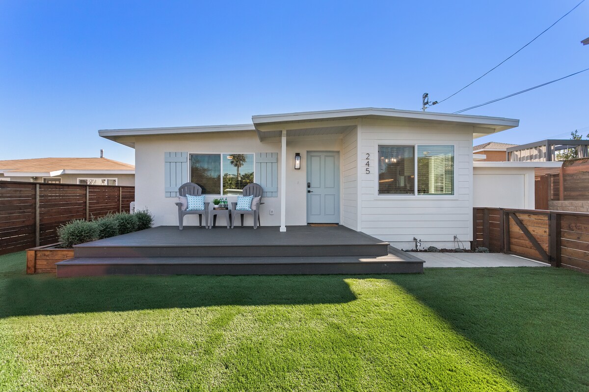 ヴィンテージカールズバッドバンガローは、横断歩道でビーチまで徒歩わずか3分で、階段に直接アクセスできます。 質の高い仕上げで完全に改装されています。 この家には寝室が3室とバスルームが2室あり、最大7名様がお泊りになれます。 各部屋にはテレビ、クローゼット、エアコンと暖房付きのミニスプリットがあります。 前後のデッキから美しい屋外スペースへと続きます。 ビーチにいない時は、敷地内のバレーボール、卓球、ボッチャなどで遊びましょう! 素晴らしい休暇に必要なものがすべて揃っています。