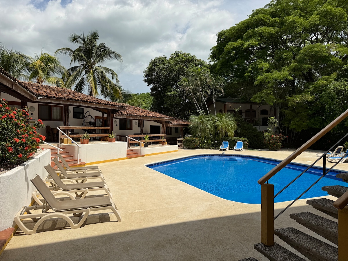 ようこそ!カサ・エア・コンプレックスへようこそ。 Casa Aire Complexは、5つのユニークな家を持つ環境に優しい開発です。アパートには、寝室1室、バスルーム1室、リビングルームにソファベッドが1台あり、3人が快適に過ごせます。 すべての家はエネルギー効率のために断熱されており、家具が完備されています。 インテリアデザインにはグアナカステやその他の地元の木材が使われています。 敷地内にはグラウンドと警備員がいます。 一般共用エリアは、他のユニット間で駐車場として共有されています。