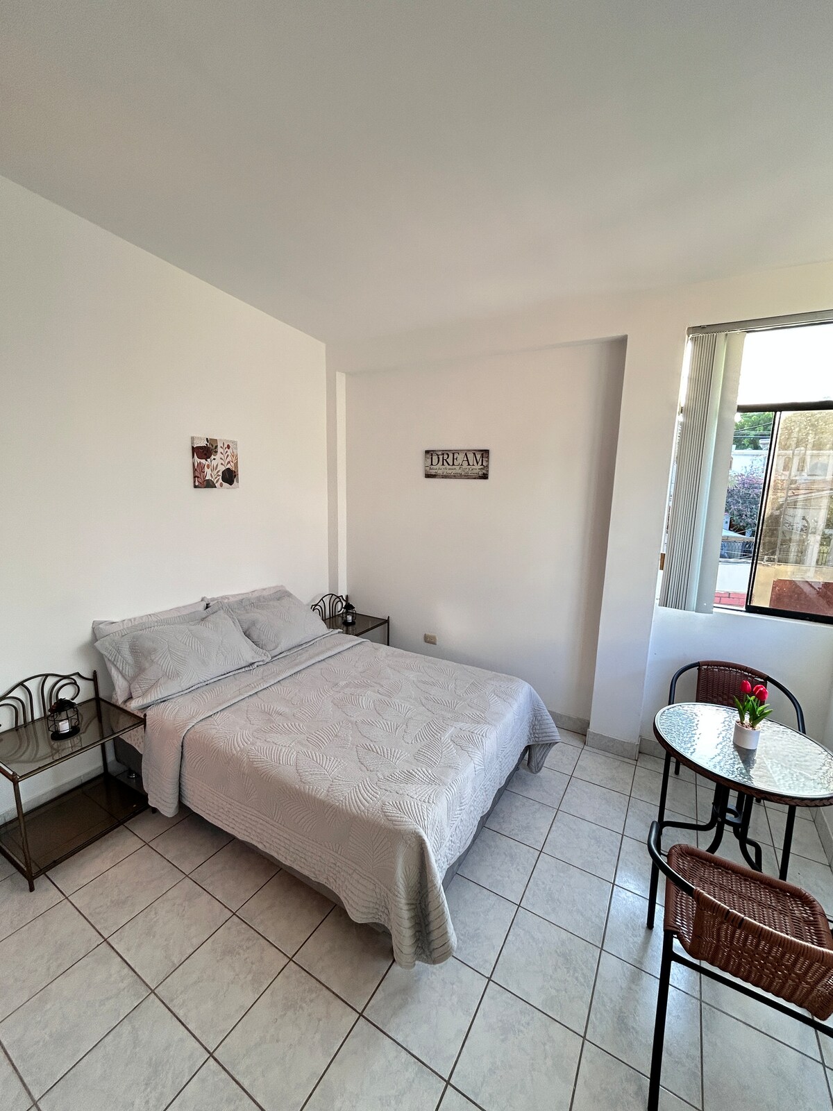 Alojamiento fresco, tranquilo, moderno y céntrico en Piura. Con aire acondicionado. Habitación en segundo piso totalmente independiente, con puerta a la calle. Sin restricciones en tus horarios de ingreso y salida. Tienes uso exclusivo de: Aire acondicionado, kitchen con vajilla y artefactos, espacio de trabajo, wifi, Google TV, baño completo con terma digital y secadora de pelo. Adicional cuentas con lavandería independiente con lavadora y secadora (costo adicional)