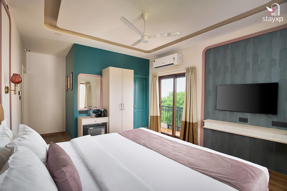 This is a compact, air-conditioned room located on the first floor. Perfect for solo travelers or couples, the room includes high-speed Wi-Fi and a smart TV for your entertainment. The room also features a private balcony overlooking a lively market street, offering a pleasant spot to relax and enjoy the view. Please note: Car parking and lift are not available. Nearby Attractions: Rock Beach – 5 mins drive / 15 mins walk White Town – 10 mins walk Sri Aurobindo Ashram – 10 mins walk