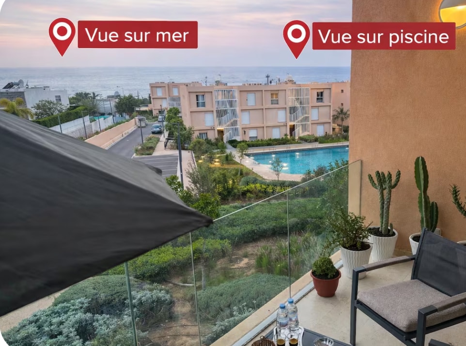モダンな豪華さとモロッコの魅力が融合した、純粋なエレガンスの素晴らしいオーシャンフロントアパートにお越しください! ✨ 床から天井までの大きな窓から絶景のオーシャンビューを眺めながら目を覚まし、専用バルコニーでモーニングコーヒーを楽しみながら波の踊りを眺めましょう。🌅 デザイナーズアパートで、豪華さと快適さ、素晴らしいオーシャンビューが完璧に融合した空間を体験しましょう。 タンラートでの忘れられない滞在を今すぐご予約ください! 🌊✨