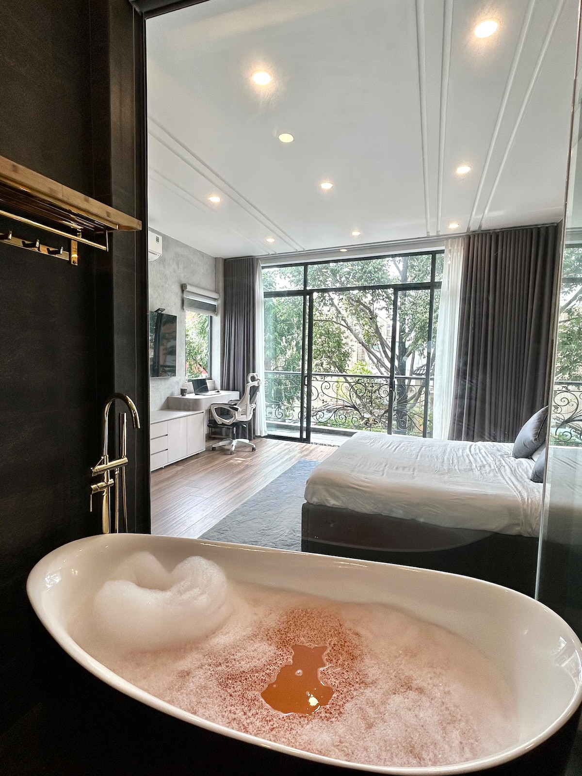 こちらの落ち着いた宿泊先で、ご家族一緒におくつろぎください。 ご予約いただきありがとうございます。お迎えするのを楽しみにしております! サイゴン(ベトナム、ホーチミン市)でのご滞在をできるだけ快適にお過ごしいただくために、以下のサービスを提供しています。 •空港送迎サービス(10泊以上のご予約で無料) •無料のプールとジム(プールは毎週月曜日に閉まります) •週1回の無料清掃サービス