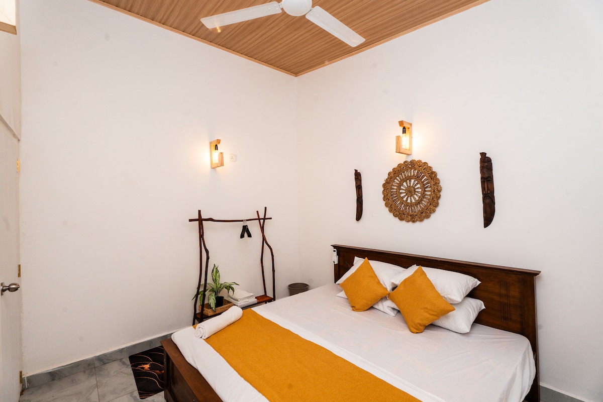 Relax in our cozy two-bedroom villa with AC, hot water, Wi-Fi, kitchen, and parking. Sleeps 4. Only 800 m from Dikwella Beach and 1.2 km from Hiriketiya Beach — perfect for couples, families, and small groups. Enjoy private, peaceful surroundings, freedom, and open spaces in nature. Airport pickup, safari/transfer, and meals/drinks available for an extra fee