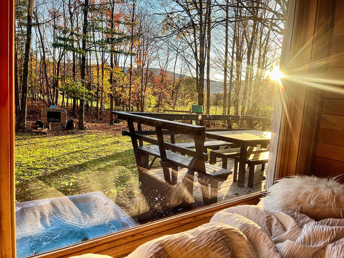 *Click on our logo to see all four of our cabins. Cabin 2: Our RECENTLY renovated 40-foot container cabin - with a shower, A/C, and wood-fired hot tub - is set on a stream/waterfall and 20 acres of wilderness. Warm in winter and cool in the summer, enjoy the Solo fire ring on the deck, gas grill, La Colombe coffee, and hammock. The cabin is two hours north of NYC, with a refrigerator, Wifi, propane, furnace, and wood stove. Woodstock, Kingston, the Hudson River and hiking trails 15 min away.