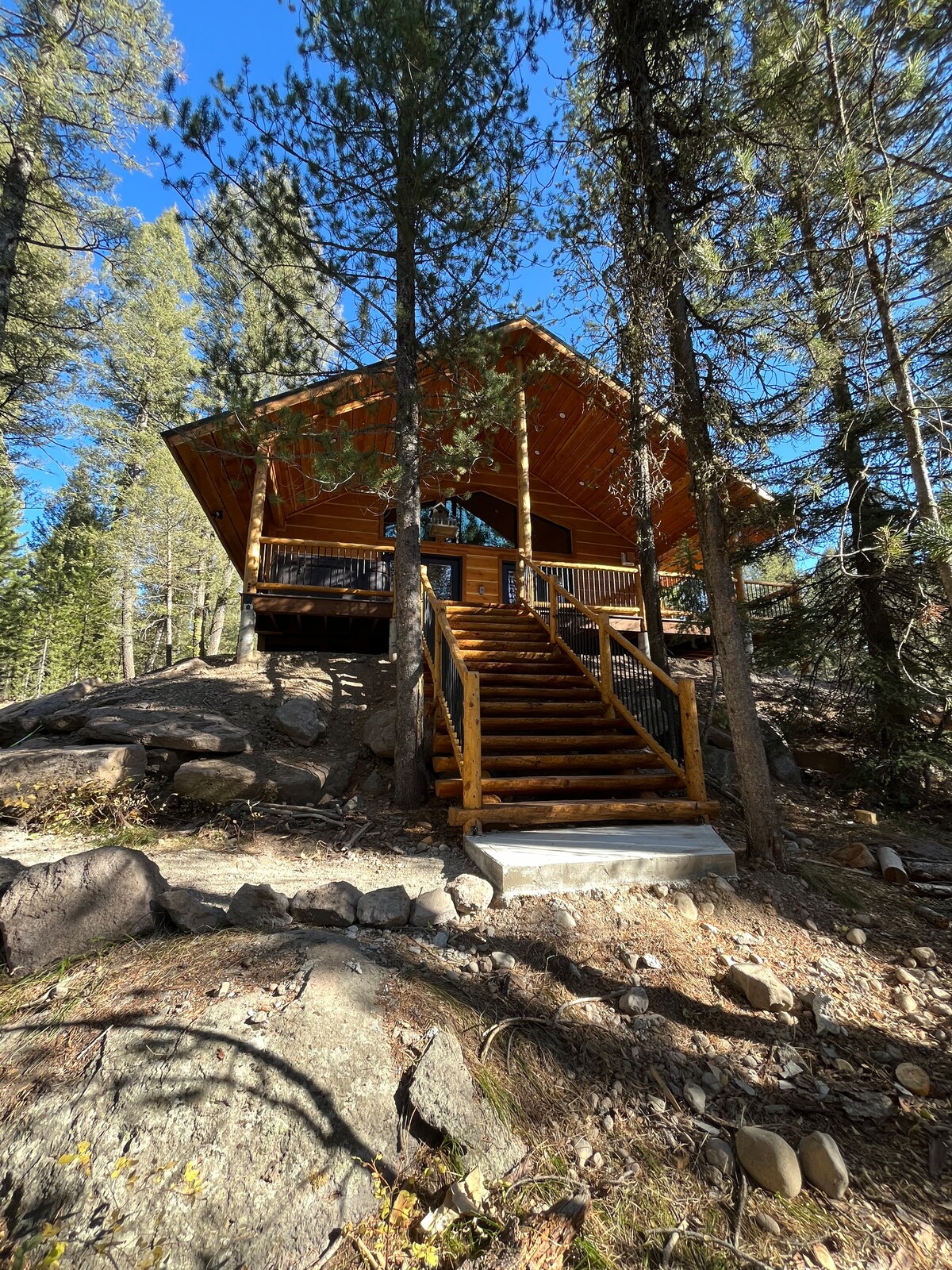 この居心地の良い三角屋根のログハウスは、イエローストーン地域の美しさを探索した長い1日の終わりに、シンプルな場所で休息とリラックスを楽しみたいカップルに最適です。 キャビンには、基本的な調理ができる小さなキッチンと快適な寝室があります。 キャビンは静かで、プライバシーを守るために森の中に隠れています。 この物件は、他のキャビンと屋外キッチンとファイヤーピットを共有しています。 注:ロフトの寝室に行くには、小さなはしごを登る必要があります。 メインフロアに布団があります。