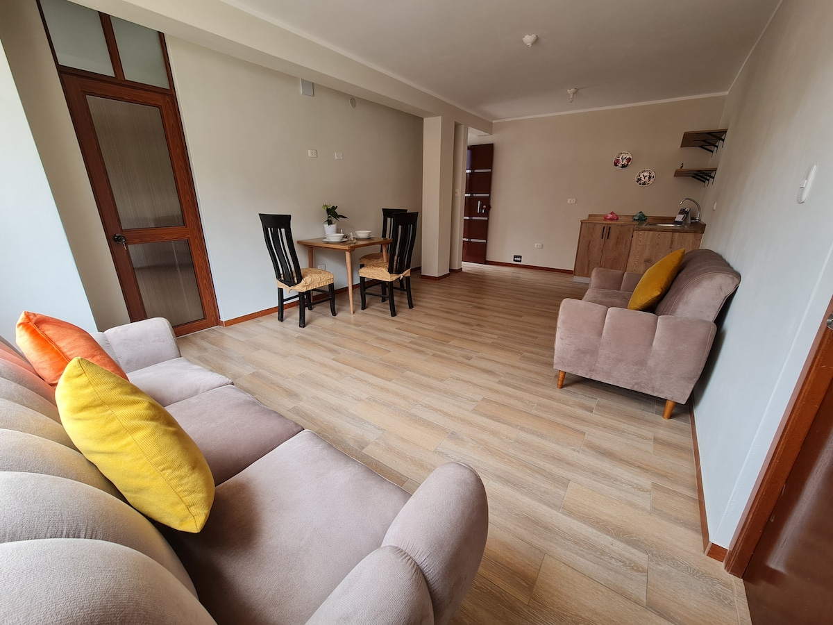 快適さとスタイルを兼ね備えた、独立したエントランスを備えたタルマのプライベートアパートメントをお楽しみください。広々としたリビングルームはリラックスするのに最適で、設備の整ったキッチンとダイニングルームは地元の料理を作ったり、食後のおしゃべりを楽しんだりするのに最適です。カクテルバーは、友人やカップルと一緒に乾杯する特別なタッチをプラスします。居心地の良い客室とモダンなバスルームを備えた各空間は、「アンデスの真珠」で本物の温かい体験をできるように設計されています。