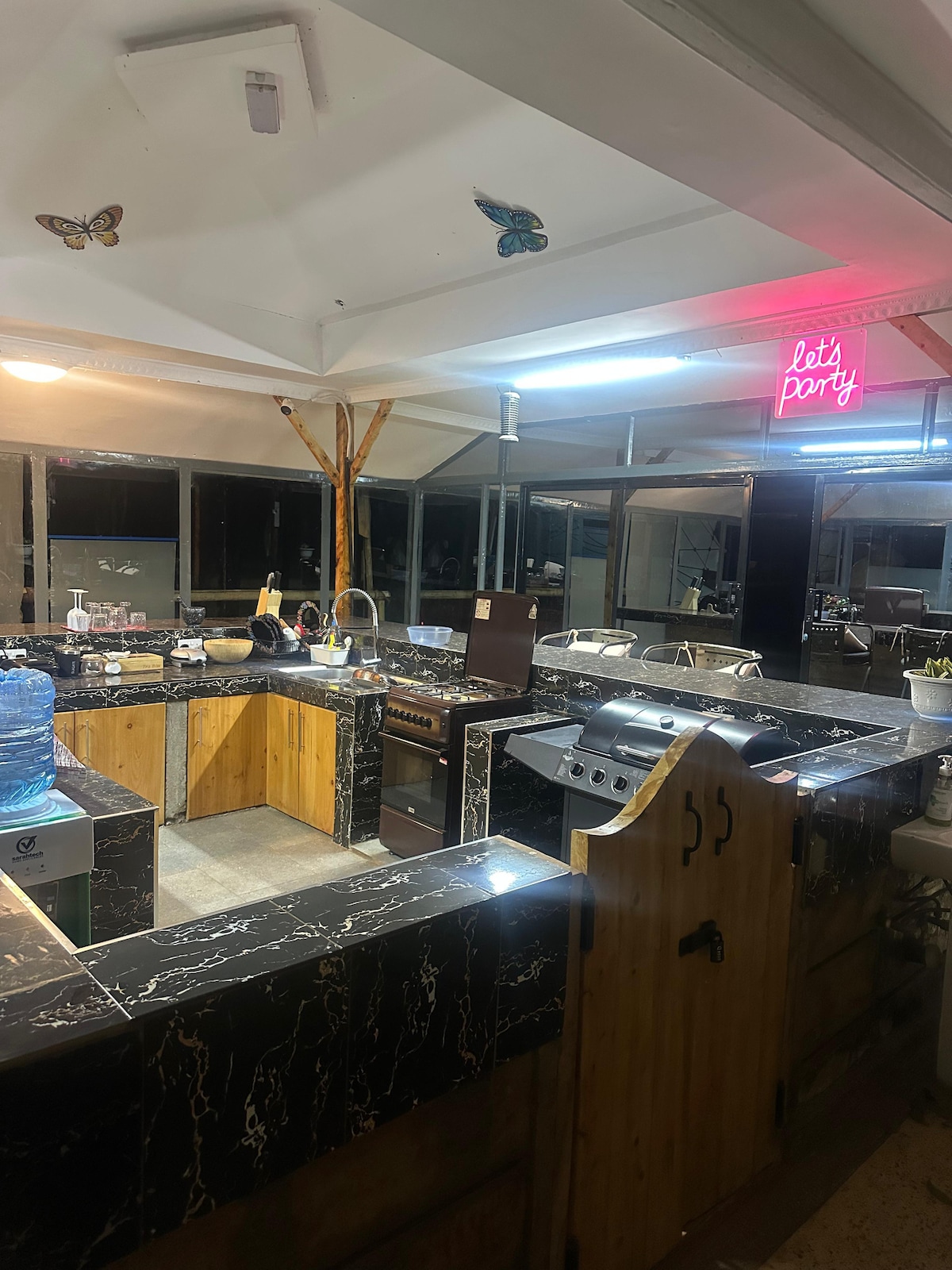 ナイロビ郊外にある快適なリトリート、ハンガー9へようこそ。都会の喧騒からの静かな逃避を提供します。 ナイロビのダウンタウンやジョモ・ケニヤッタ国際空港から車でわずか1時間の場所にある家族経営の小さな農場にあるこの家には、3つの寝室、2つのバスルーム、オープンプランのリビングエリア、広いベランダ、プール、サンダウンファイヤーピットがあり、遠くのナイロビの街の景色を眺めながらリラックスできます。