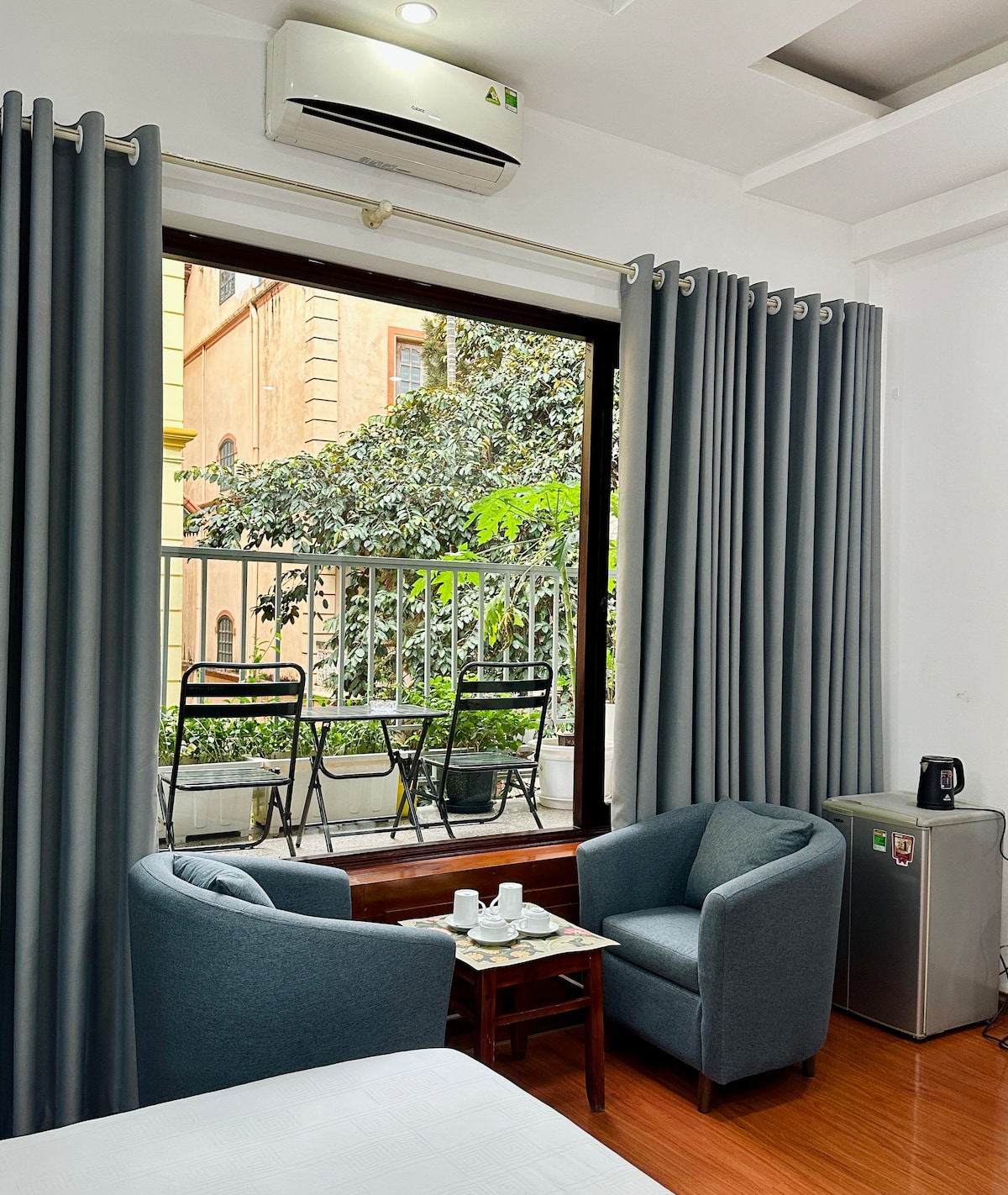 Newly built building which is suitable for short to longterm rent, having a fully function private laundry plus kitchen and shared garden space for rental guests only. The house is located in the heart of Ba Dinh district, fully airy with big window and only takes 3 minutes walking to the West Lake, 15 mins to the Old Quarter via Grab/taxi (approx. $2-3) and Lotte Lieu Giai is 15 minute walk or a 3-minute taxi, or we also offer free airport drop off service for guests who stay more than 3 nights