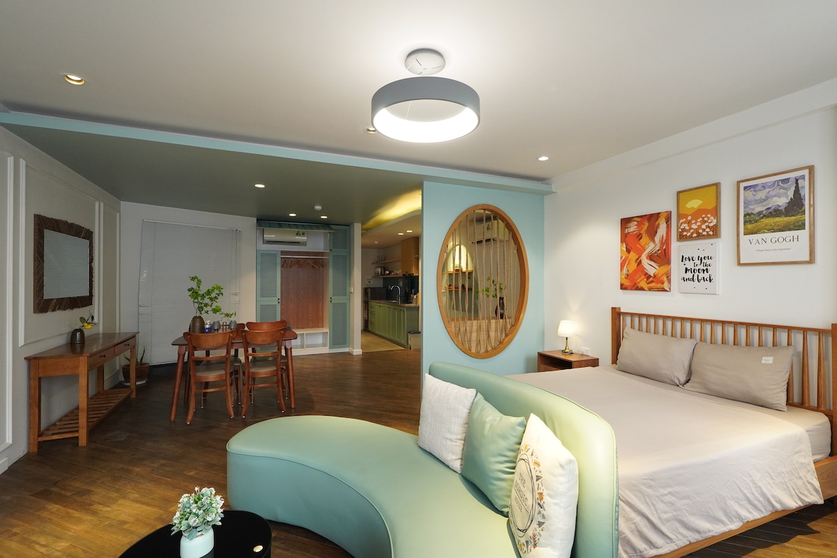 外の忙しいリズムから離れて本当の休暇を過ごすのに理想的な場所です。このアパートは、ロマンチックなオアシスにあり、西湖、チュックバック湖のすぐ隣にあり、有名な観光スポットへの移動に便利です。「The Autumn」にお越しください。フォークデザインスタイルの調和を通じて、ベトナムの本当の秋にお連れします。近くでとても暖かいです。部屋は建物の中で最も美しい大きなバルコニー付きの共用リビングルームの向かいにあります!探検家なら最高の選択です。